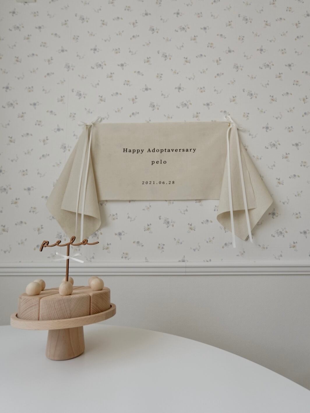 シンプルなのに存在感もある、どんなシーンでもお使いいただきやすいうちの子記念日タペストリー。
